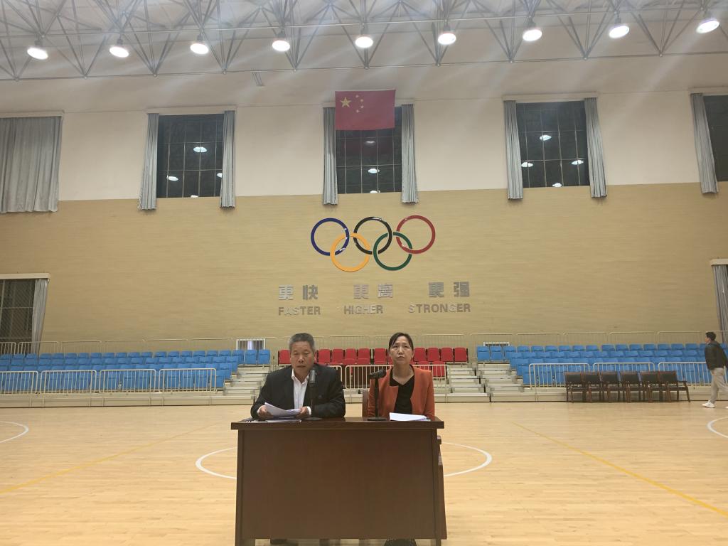 会上,副院长刘仁憨宣读了《KY开元集团官网庆祝学校60周年校庆活动实施方案》,副院长雍世仁宣读了关于校庆期间体育学院纪律规定,18级社体班学生李佳明同学做了表态发言。