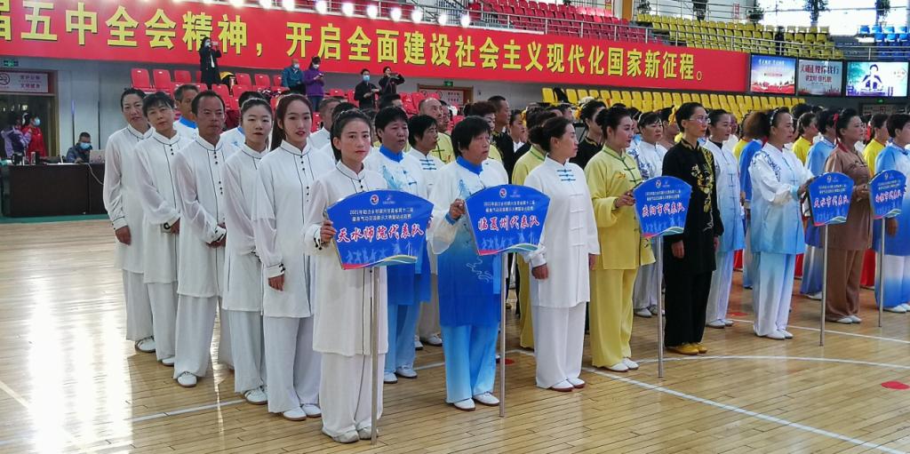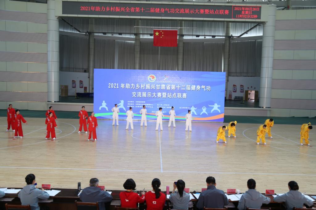 9月26日,2021年助力乡村振兴甘肃省第十二届健身气功交流展示大赛暨站点联赛在玉门市体育馆拉开帷幕。参赛队来自全省13个地州市、兰州新区和天水师范学院代表队共15支代表队。本次比赛由甘肃省体育局主办,甘肃省社会体育管理中心、玉门市人民政府承办,甘肃省健身气功协会、玉门市文体广电和旅游局、玉门市体育中心协办。