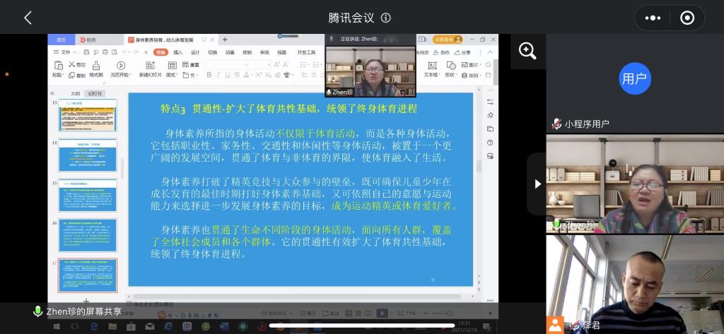 12月19日下午15:00-17:00,首都体育学院原副校长,天水师范学院第四轮重点学科“体育学”首席专家,教授、博士生导师王凯珍应邀为KY开元集团官网师生作题为“身体素养视域下的幼儿体育培育发展”的学术报告,会议采用腾讯会议线上方式举行。