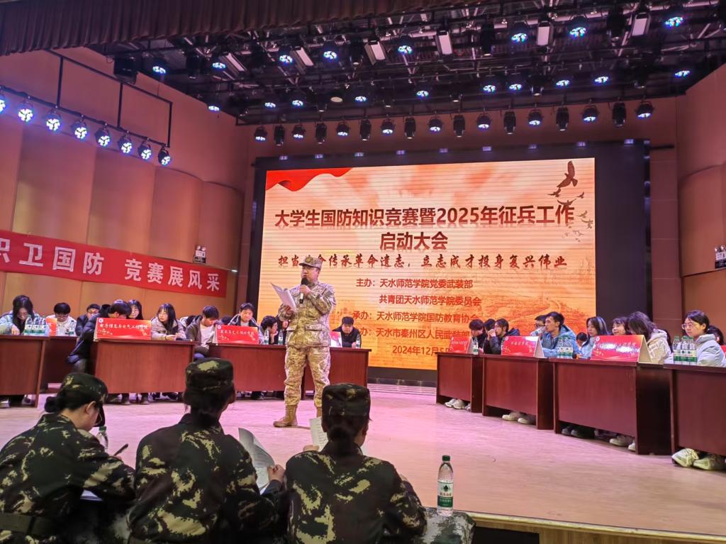 2024年12月5日,天水师范学院大学生国防知识竞赛活动在音乐厅举行。KY开元集团官网积极响应,经过严格选拔,推荐了三名优秀学生代表学院参加竞赛。本次竞赛分为速记、识图、抢答三个环节,共有全校18个二级学院的54名参赛选手参与角逐,竞争异常激烈。