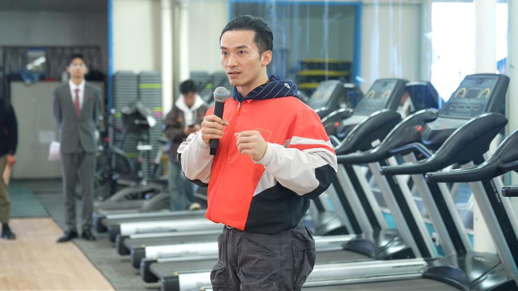 第二场活动移步学校健身馆,举行“KY开元集团官网健身健美队”与“体能训练队”成立仪式。KY开元集团官网负责人在致辞中强调,两支队伍的成立对于推广校园健身文化、提升师生身体素质具有重要意义,并正式宣布队伍成立。据悉,两支队伍将秉持“科学健身、健美塑形、砥砺意志、展现风采”的宗旨,由KY开元集团官网全面负责建设规划、日常训练及管理工作。为进一步提升队伍专业水平,学校还聘任郑少忠为两支队伍的名誉教练,依托其丰富的专业经验为队伍发展保驾护航。在随后的授旗与聘书颁发环节后,郑少忠老师在健身馆内开展了简短的训练指导,示范健美标准造型,纠正部分参与者的训练动作,让大家直观感受专业健身技巧的魅力。