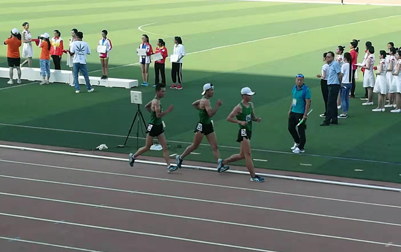 开元官网2018级运动训练1班周小军以46:34.70的成绩获得男子乙组10000米竞走金牌。
