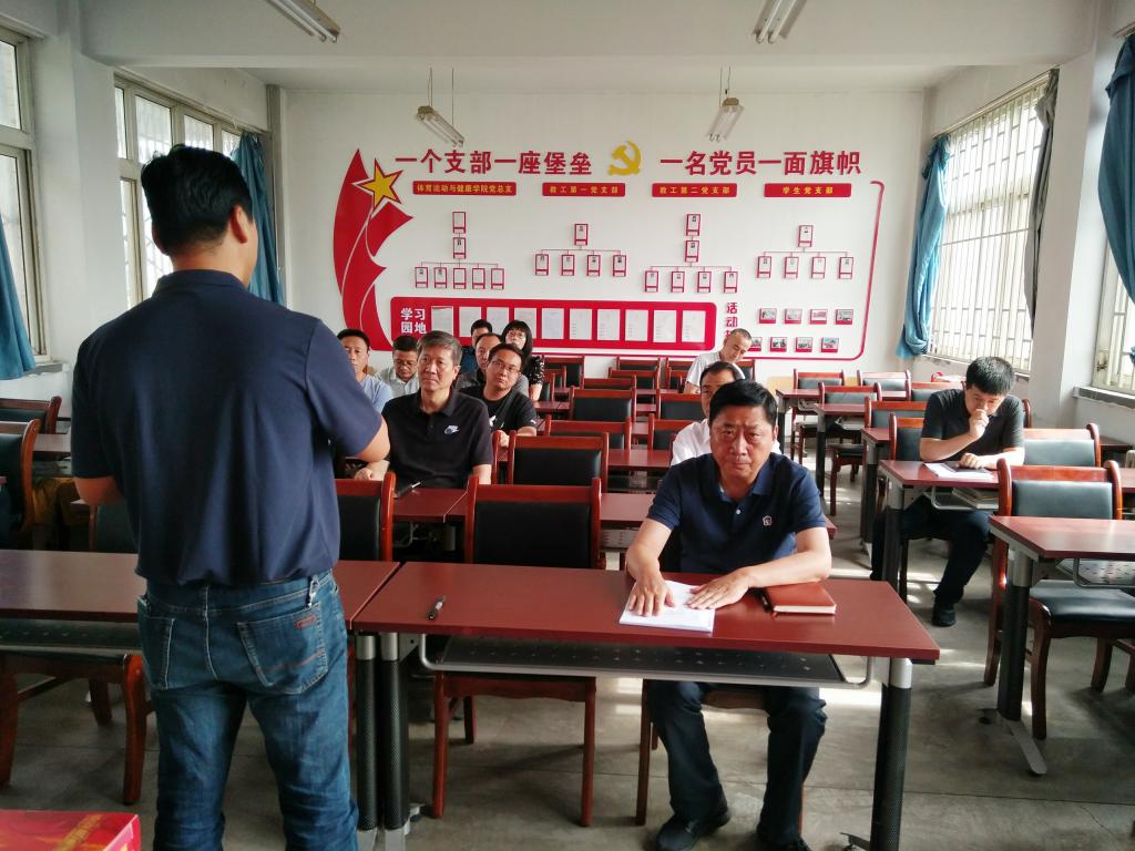 观摩党支部标准化建设主要通过现场问答、现场汇报、查阅相关党建材料等形式进行,学院副院长、教工第二党支部书记程晖重点围绕党建工作与教学科研高度融合、党建业务水平与思想认识同步提高、党建特色品牌活动与体育服务大众有机结合等方面作了现场汇报,并就如何加强党员思想政治教育和管理、如何发挥党员先锋模范作用、如何凝练特色党建活动等一一作了现场解答。