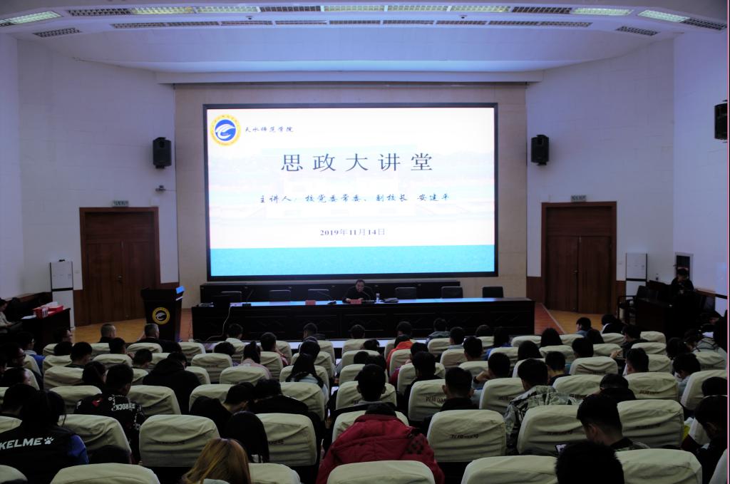 11月14日晚7点半,学校党委常委、副校长安建平在2号报告厅开设思政大讲堂,为KY开元集团官网师生宣讲党的十九届四中全会精神。会议由KY开元集团官网党总支副书记吴建全主持,体育学院辅导员以及学生共计300多人参加。