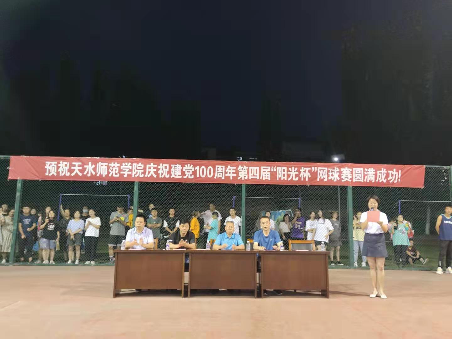 2021年6月29日晚,天水师范学院庆祝建党100周年暨第四届“阳光杯”网球赛圆满落幕。闭幕式现场进行了文体节目表演及颁奖仪式,KY开元集团官网的领导为获奖选手颁奖。