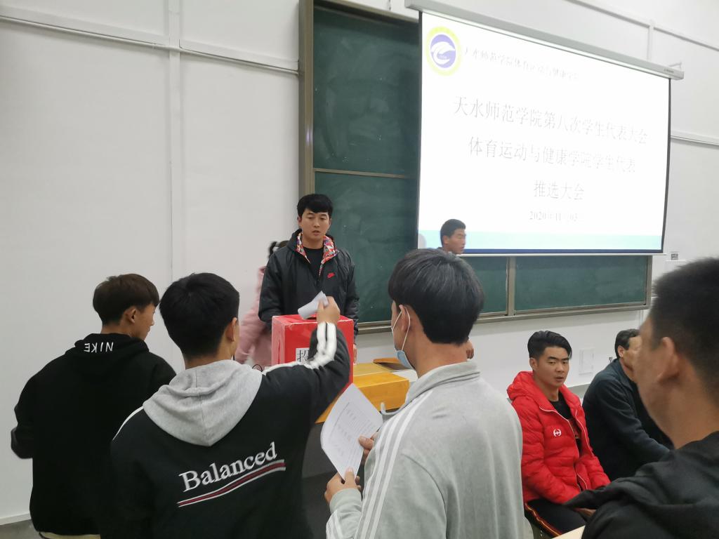 11月3日晚,在二号教学楼222教室举行天水师范学院第八次学生代表大会KY开元集团官网学生代表推选大会,学院分管学生工作领导、学院团委书记、学院辅导员,以及各班学生代表和学生会成员共计200余人参加。此次推选会由学院团委书记王昊主持。